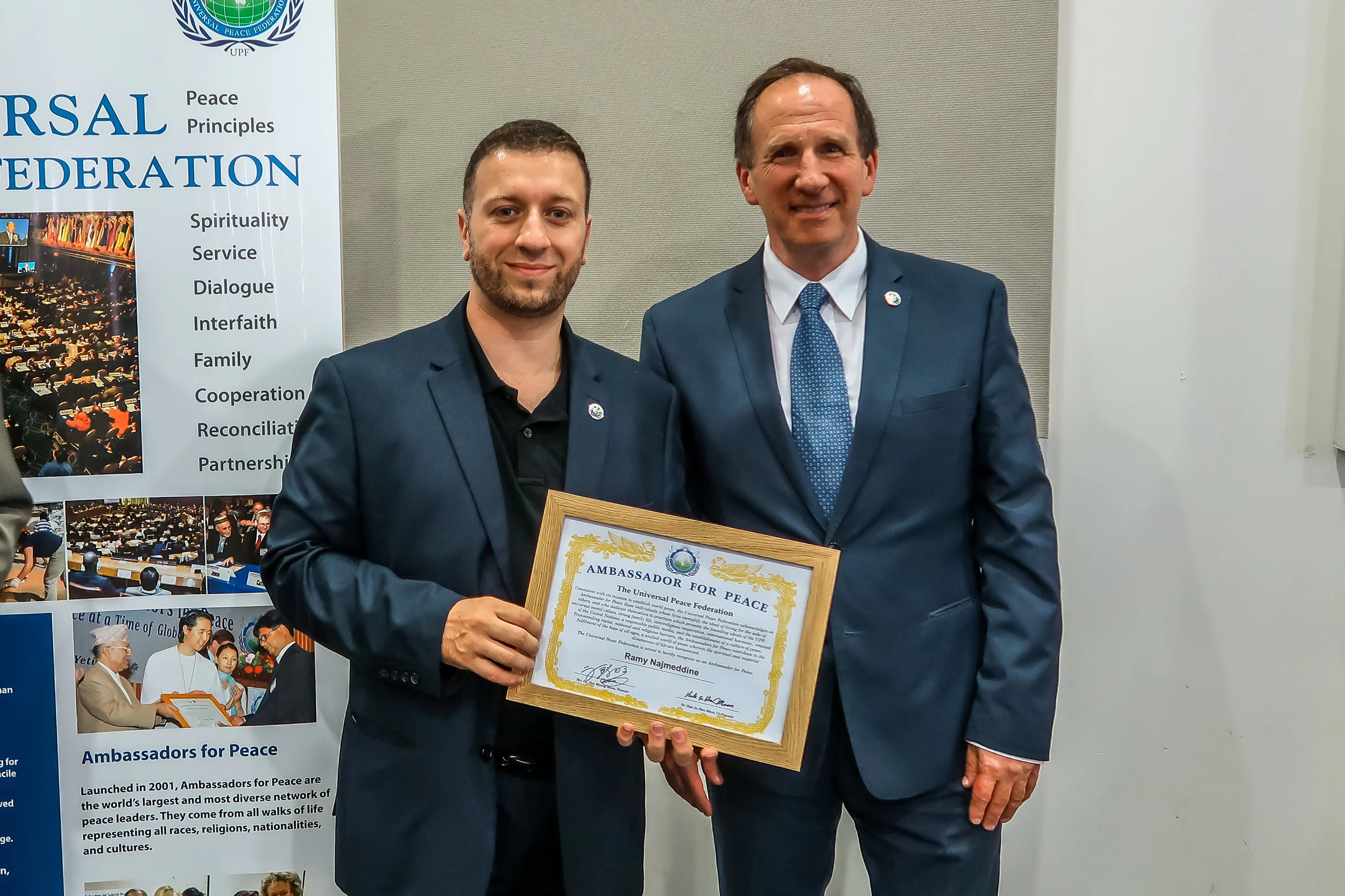 So HH founder Ramy Najmeddine was presented with the Ambassador for Peace Award by VP of Universal Peace Federation Mr. John Bellavance for his great community work, dedication and efforts serving others.